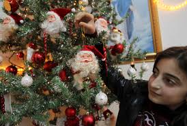 The 5 meter tall tree has been erected in the neighborhood of Karrada , on the eastern side of theTigris River tigers, where Christians and Muslims, Shiites and Sunnis, live together peacefully.